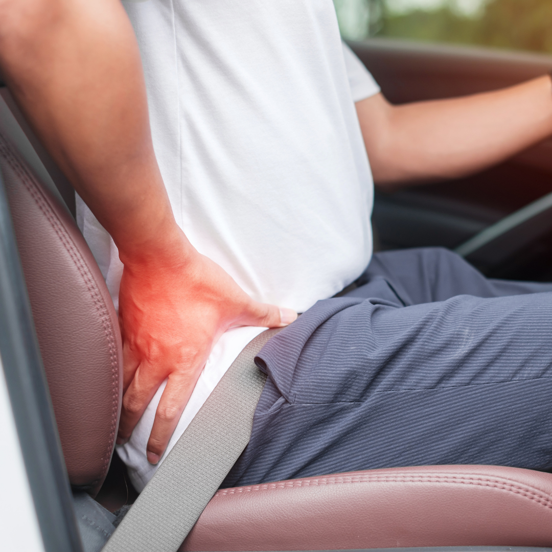 Många fordonssäten ger för lite stöd åt ländryggen. Det gör att bäckenet tippar bakåt, svanken försvinner och musklerna i nedre ryggen måste jobba onödigt hårt för att hålla upp kroppen.