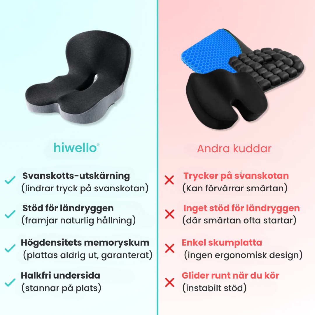 Efter 2 års utveckling tillsammans med ortopediska experter har vi tagit fram Hiwello sittkudde för att lindra: