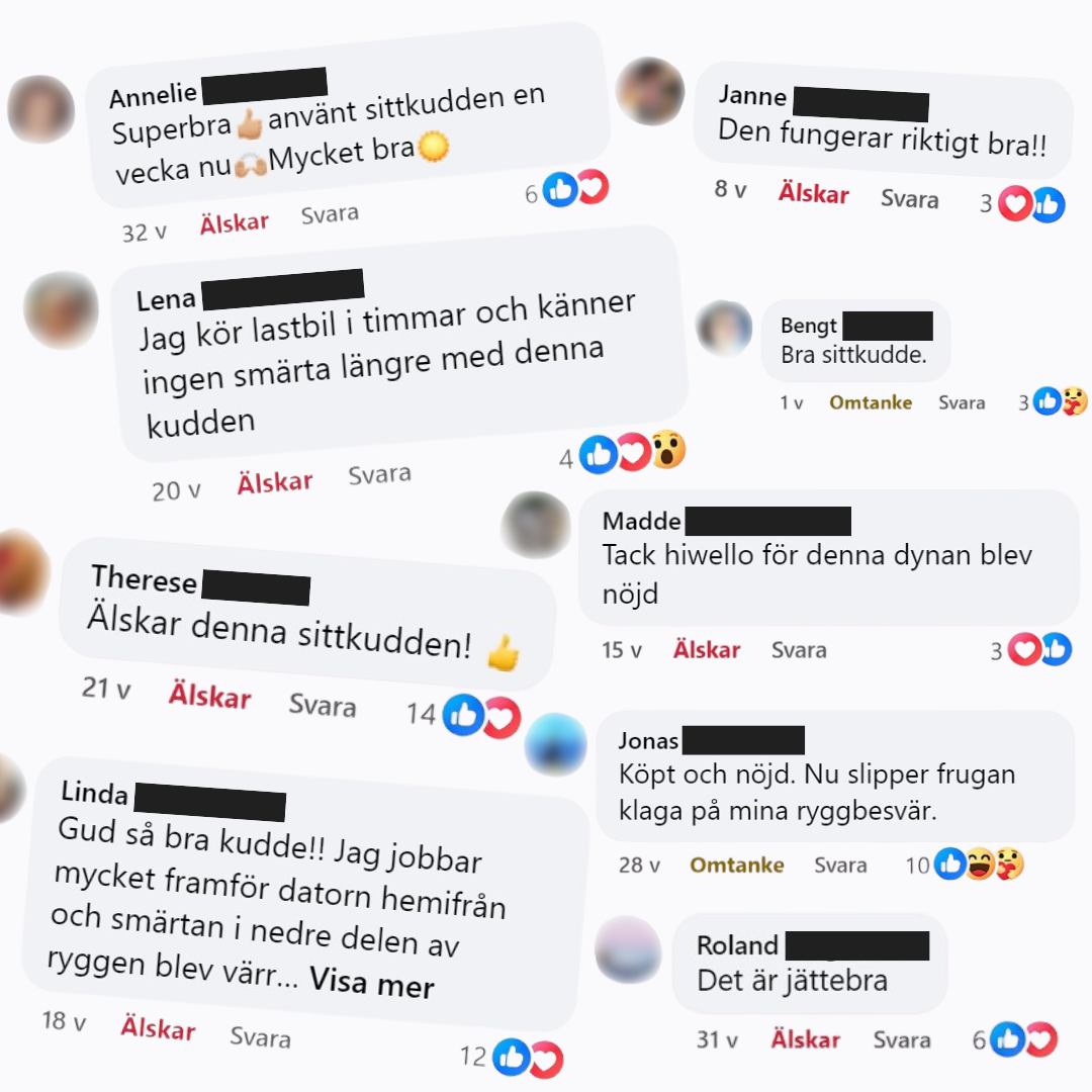 Hiwello är utformad med en särskild öppning vid svanskotan som tar bort onödigt tryck. Vikten fördelas jämnt över hela kudden i stället för att pressa direkt mot benet. Resultatet blir att den brännande känslan minskar och det blir betydligt lättare att sitta längre stunder.